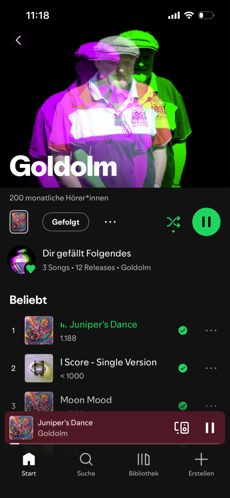 Ich freue mich, dass die neue GOLDOLM Single Juniper’s Dance so gut ankommt, dass im Januar 200 Hörer:innen registriert wurden. Folgt mit dort auch gerne, wenn Ihr über neue Veröffentlichungen auf dem Laufenden sein wollt. Als kleines Dankeschön verschenke ich jeweils einen Kaffebecher mit dem ikonischen Goldolm-Logo an die ersten drei, die sich dafür bei goldolm@t-online.de melden. Ohne Gewähr natürlich…